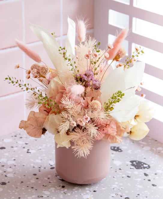 1: bloempotje met droogbloemen2: Kader met letter (geef vooraf letter en e.v. naam door)3: Kader met rondom droogbloemen4: Kader met droogbloemhart